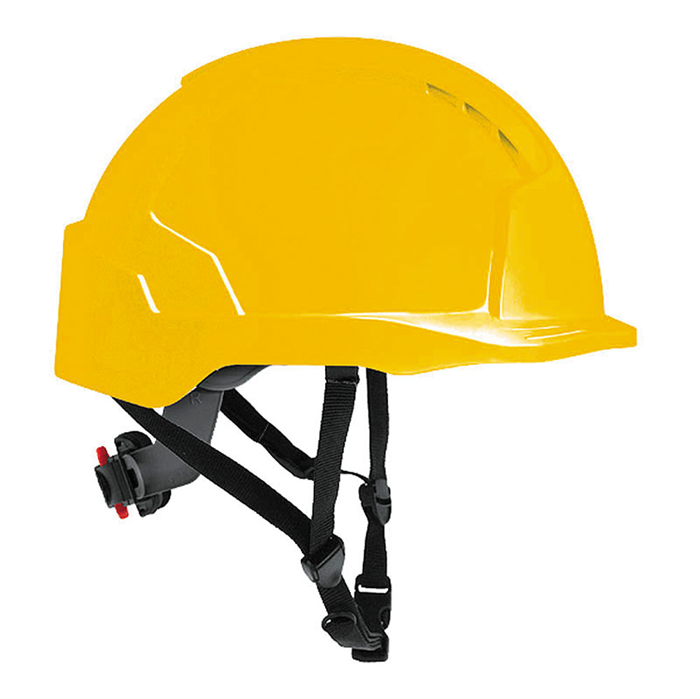 Light safety helmet EVO LITE Basic. Size adjustment by strap. Version with ventilation holes and long peak. Low weight combined with high-comfort helmet harness and unique three-point helmet harness depth adjustment ensure perfect fitting to any head size. With light shell made of ABS and innovative design the EVO LITE Basic helmet exceeds requirements of EN 397.